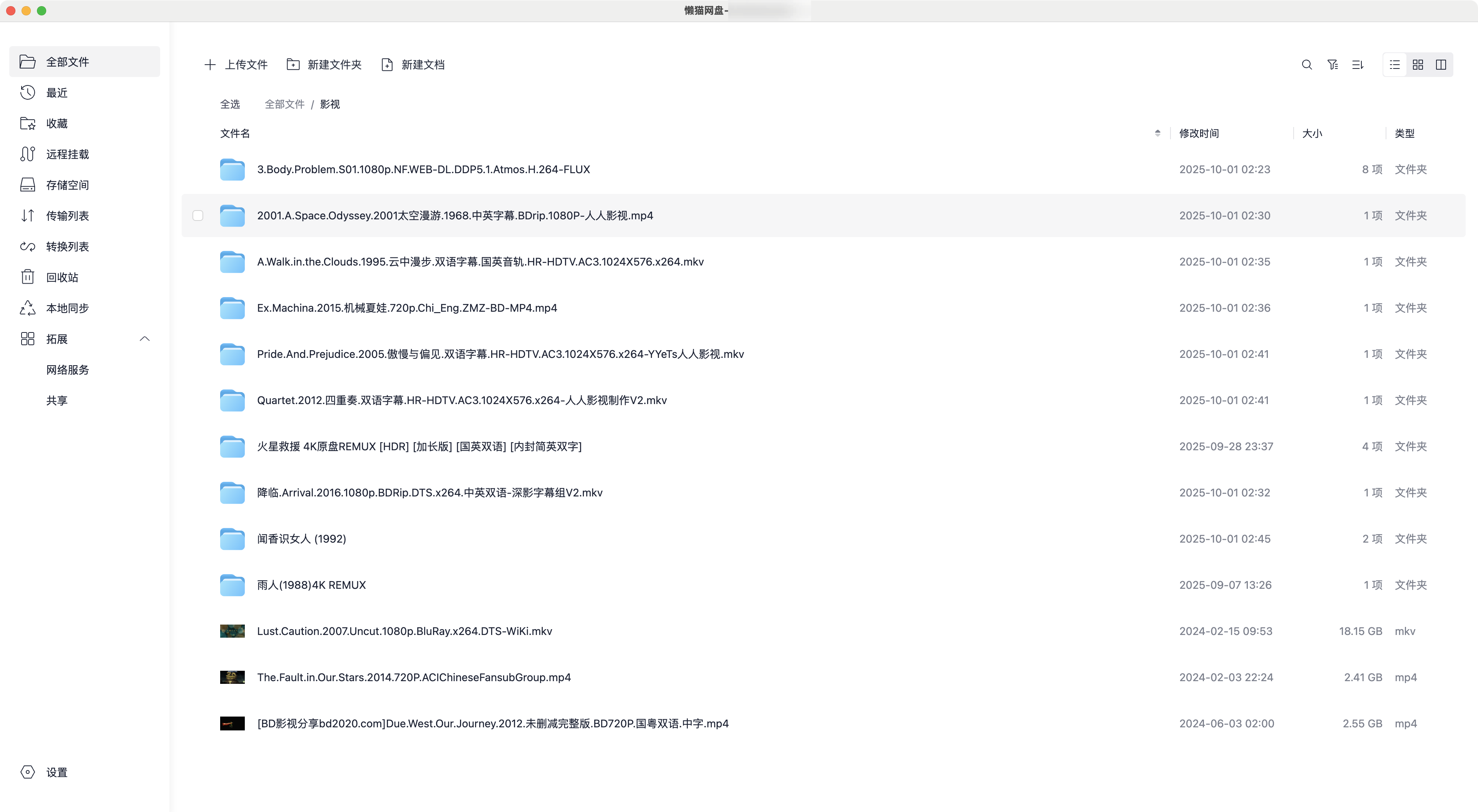 将下载好的电影、剧集等视频文件,直接拖拽上传到懒猫网盘中。